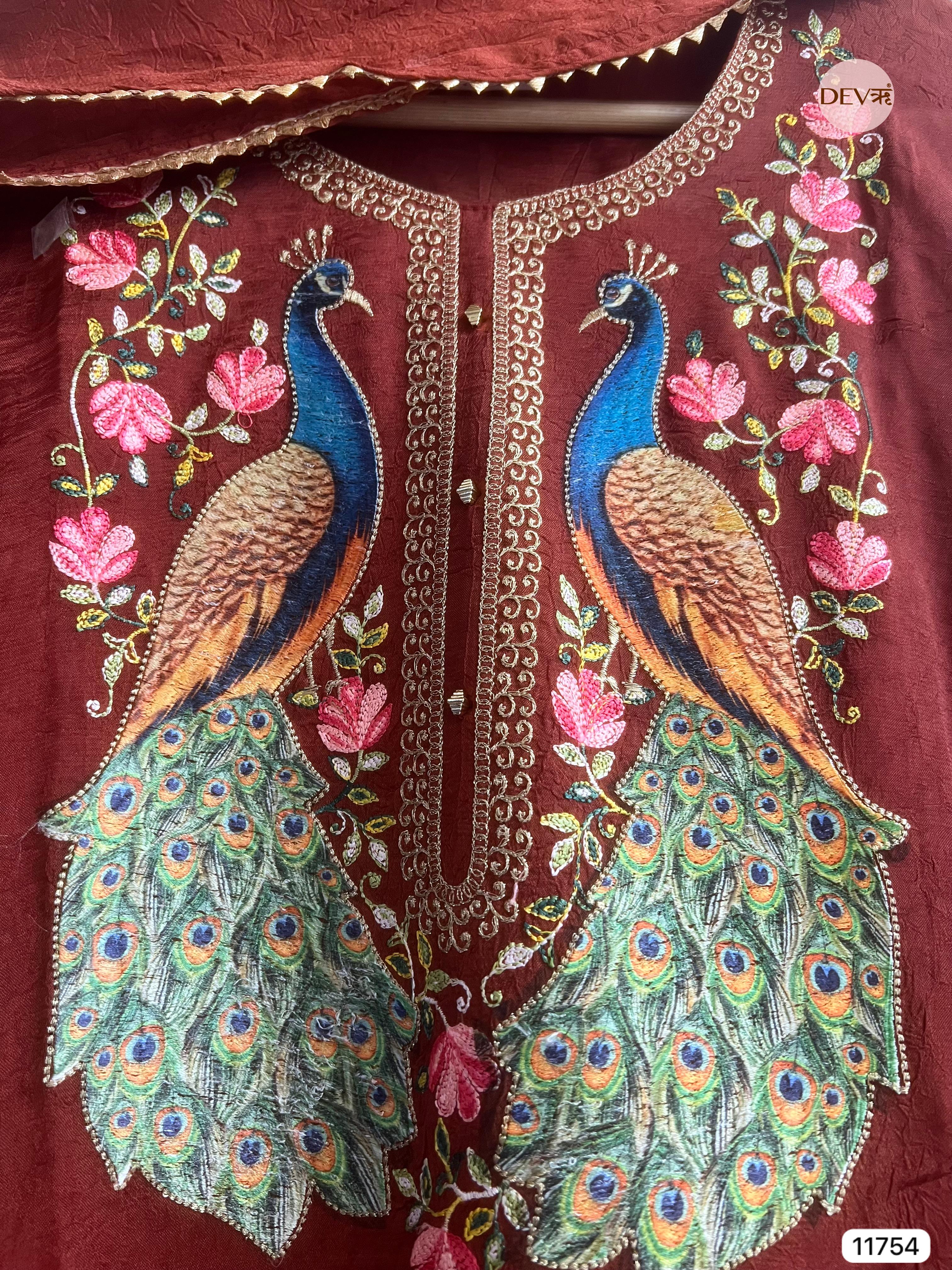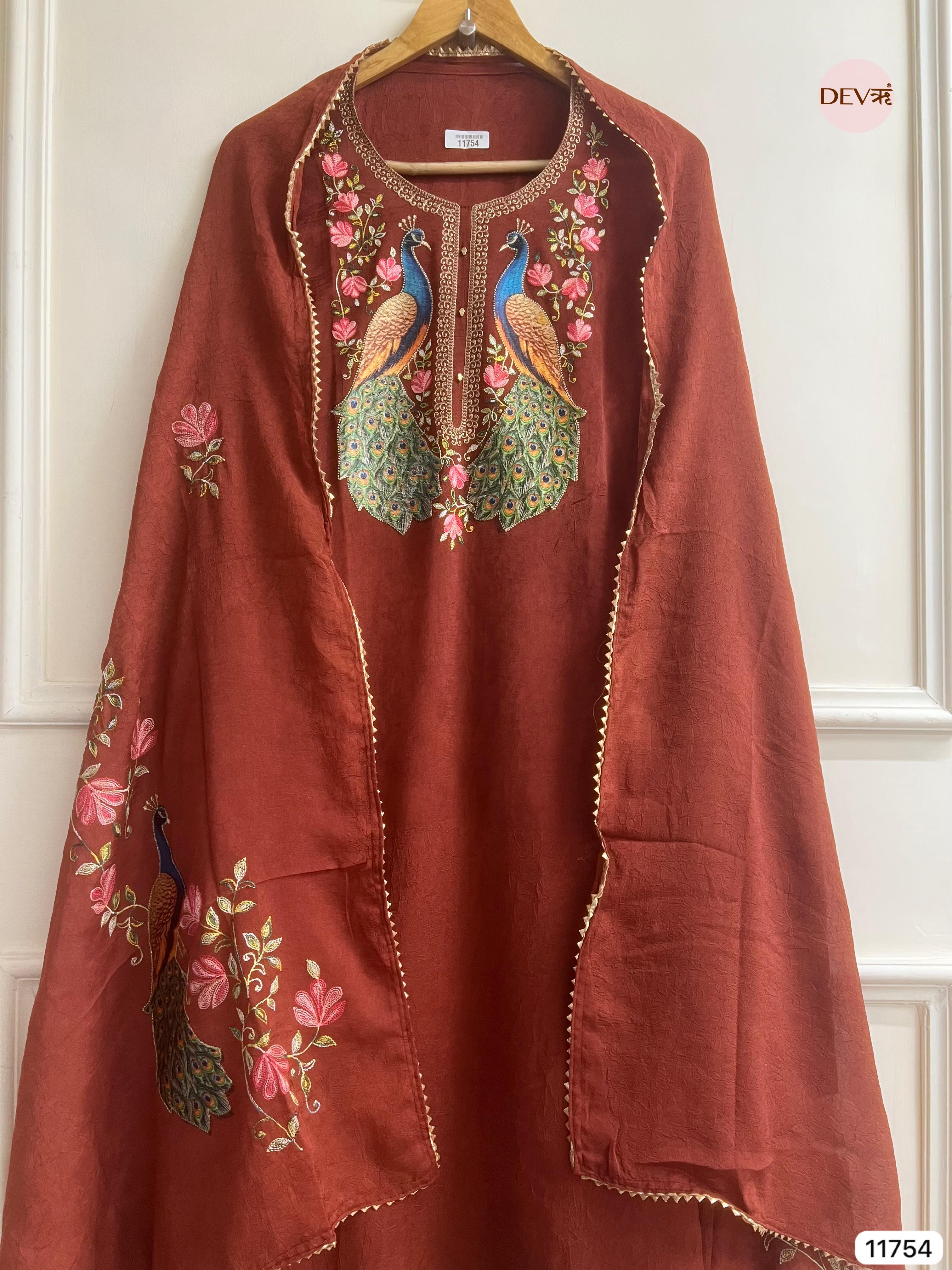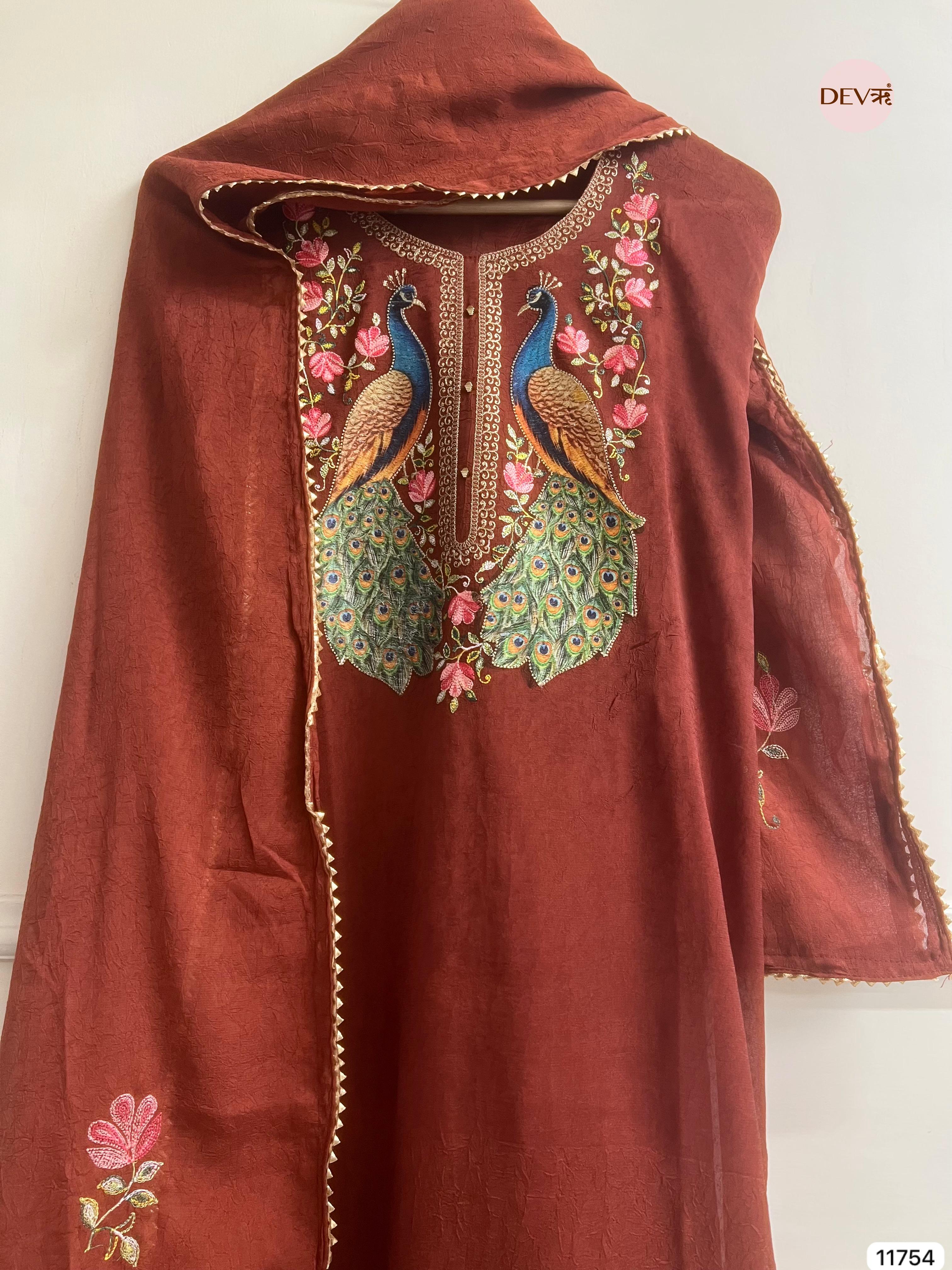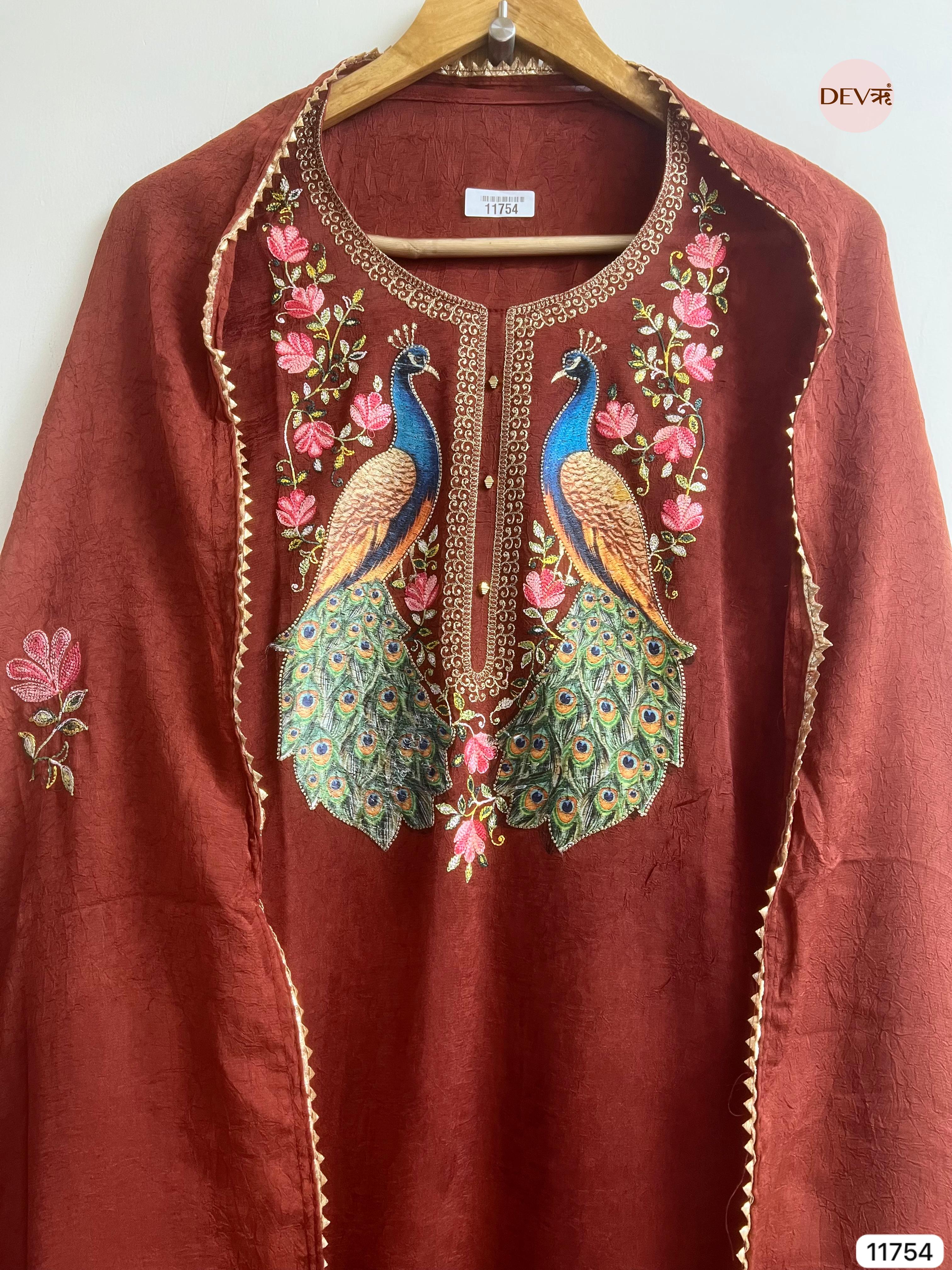Shirt - Russian silk unstitched hand appliqué work embroidered