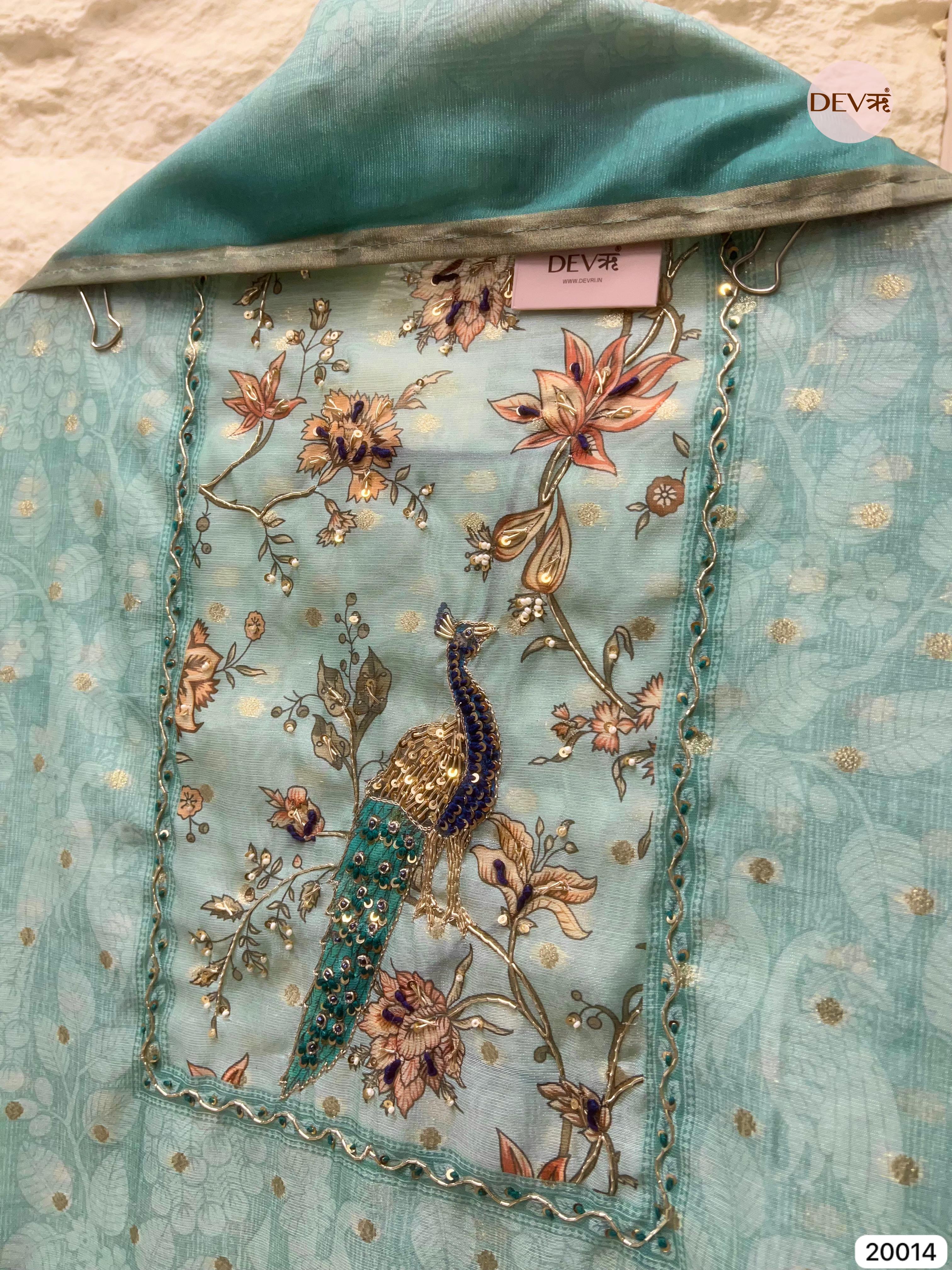 Shirt Fabric Details: Fabric: Pure chanderi Detailing: Floral print with hand-embroidered peacock motif, sequin work, and gold lace border