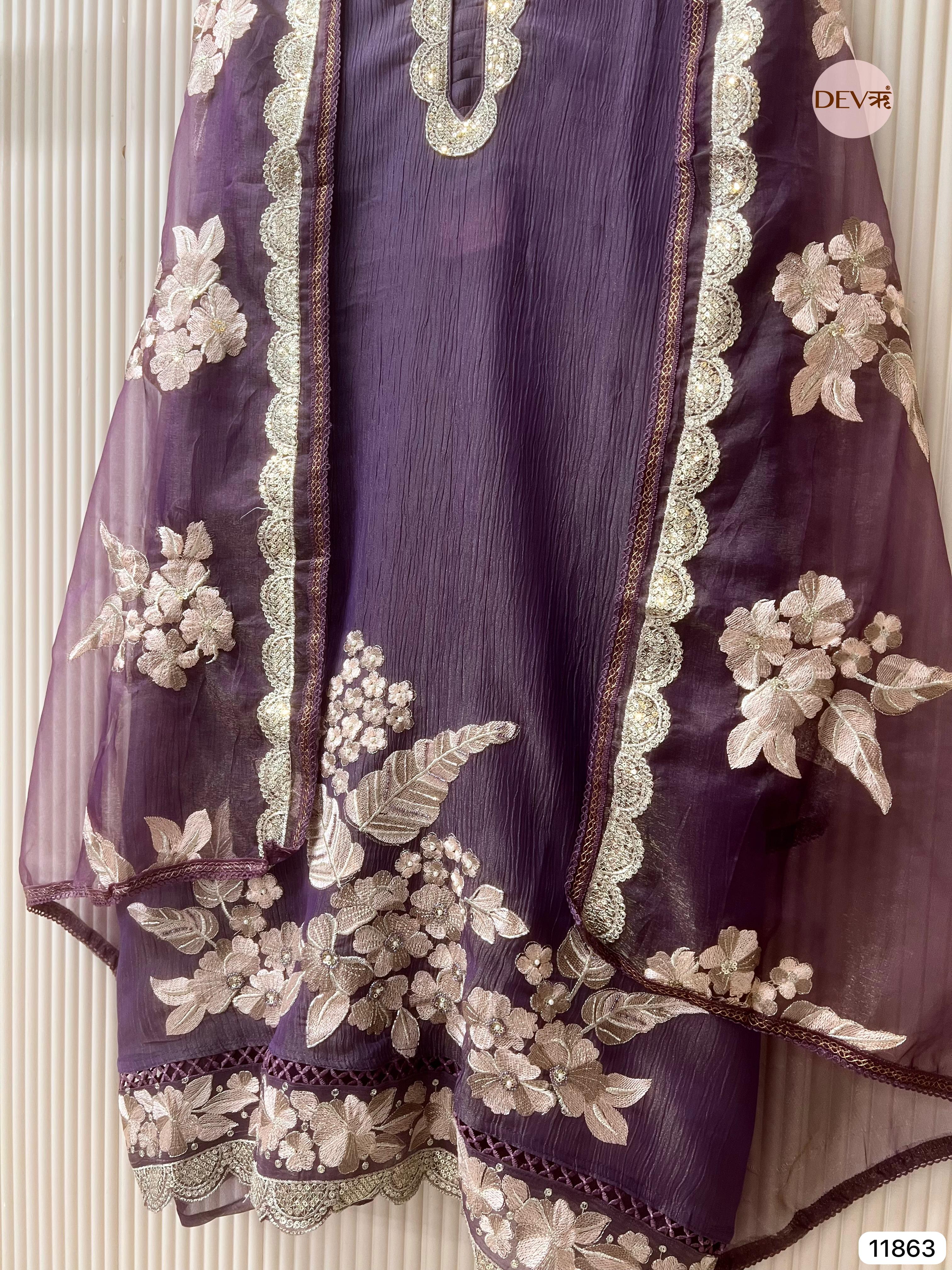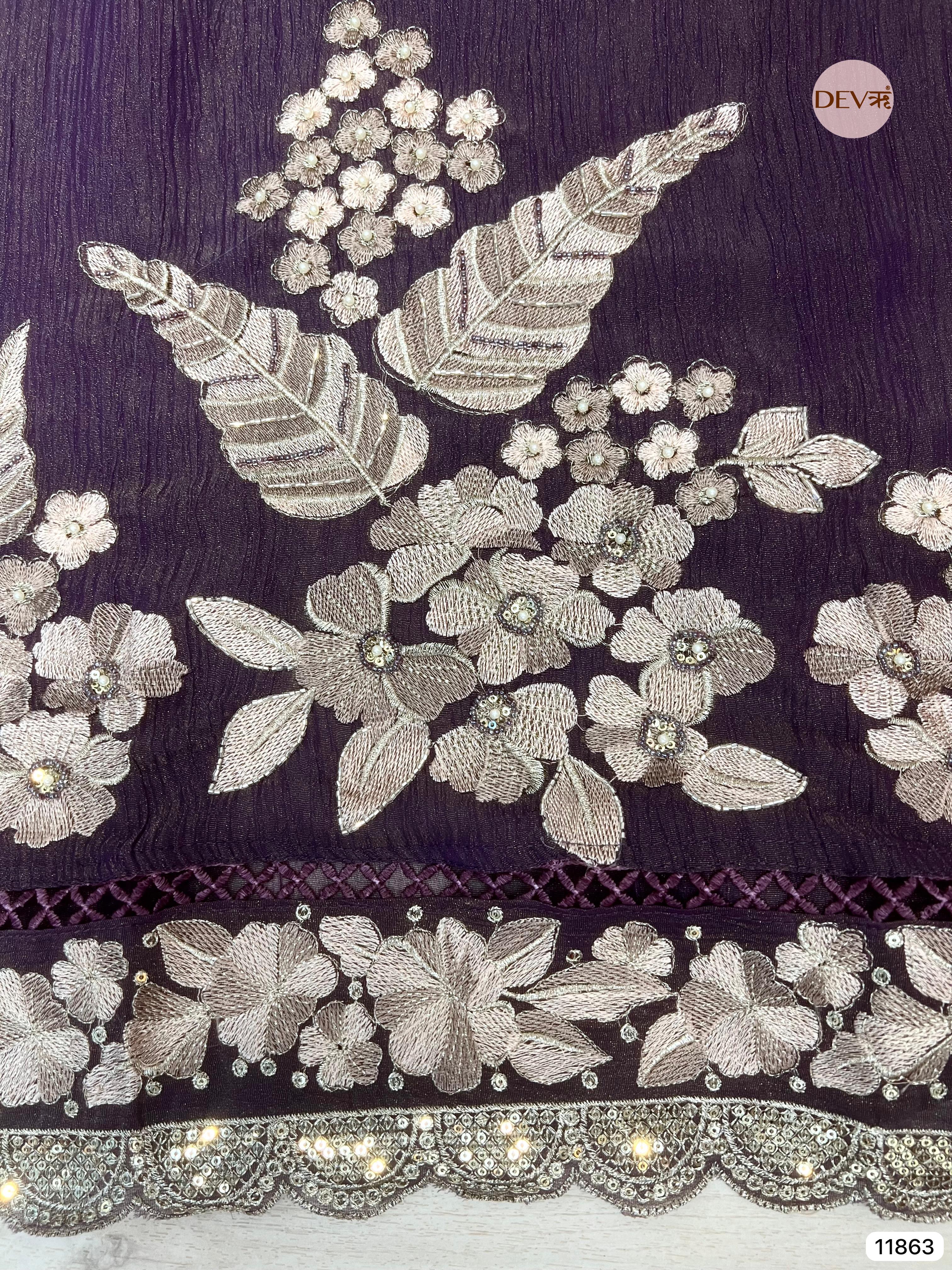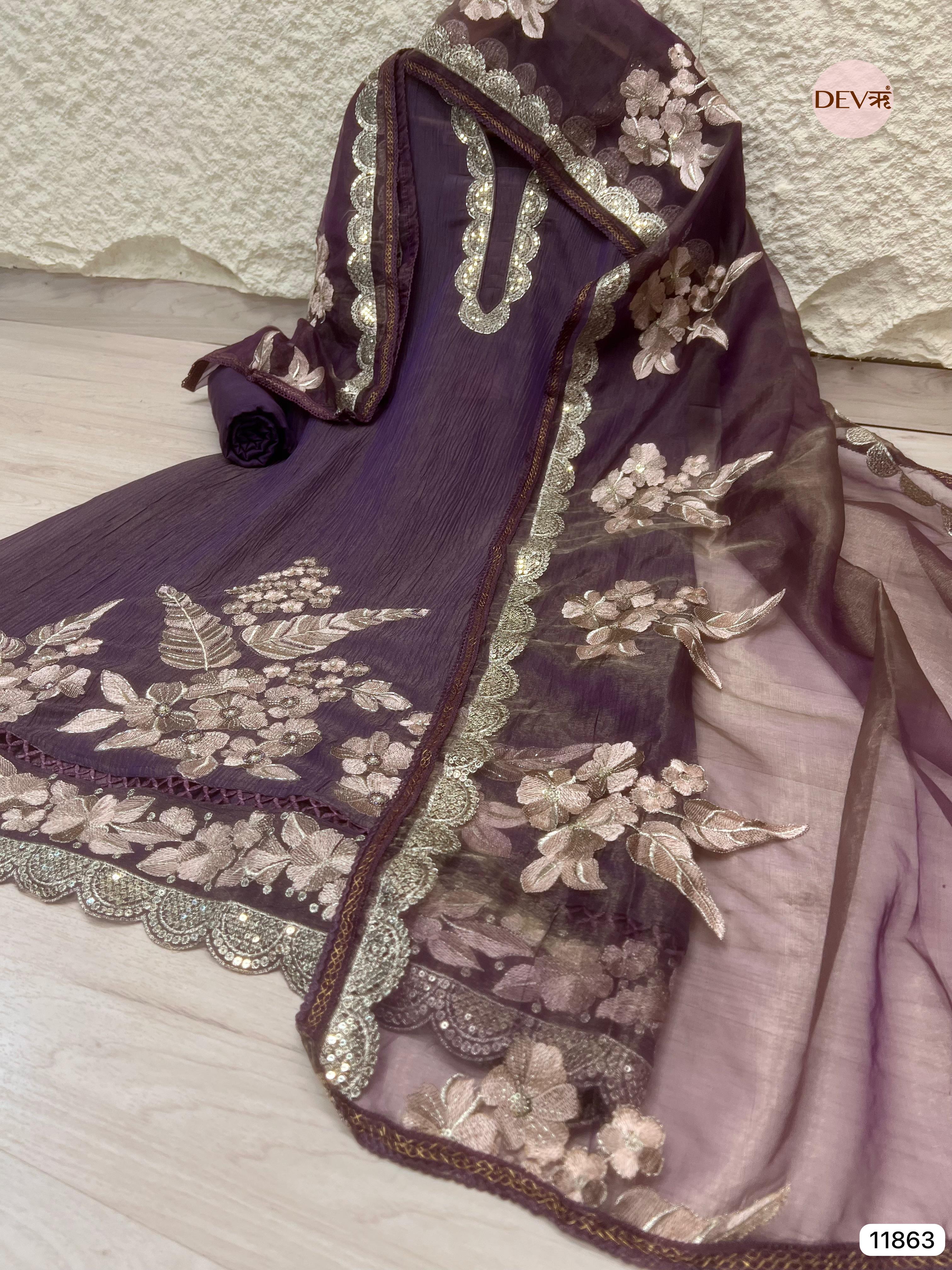 Purple Tissue crush silk unstitched embroidered -Set Of 3