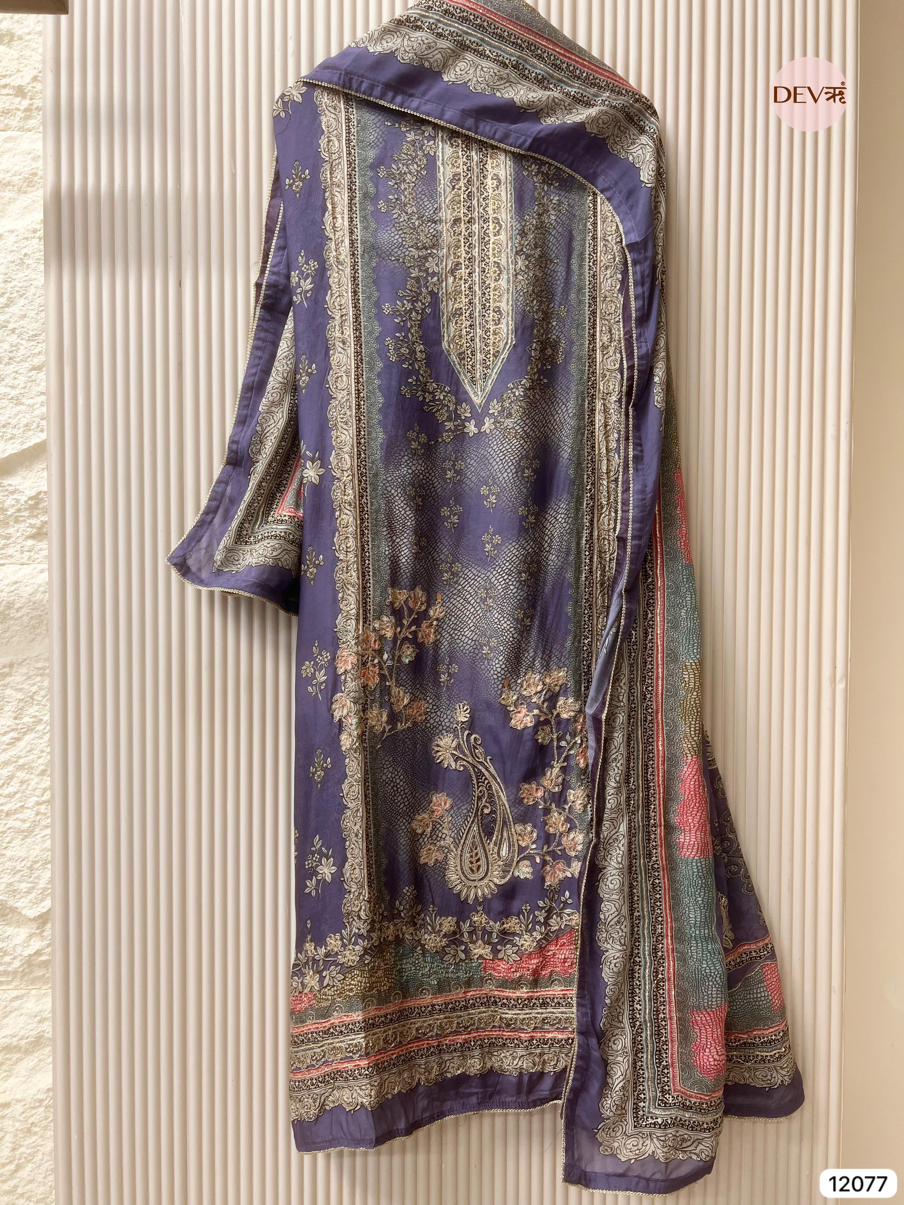 Dupatta - Pure chinon printed with hand zardosi embroidery on motifs