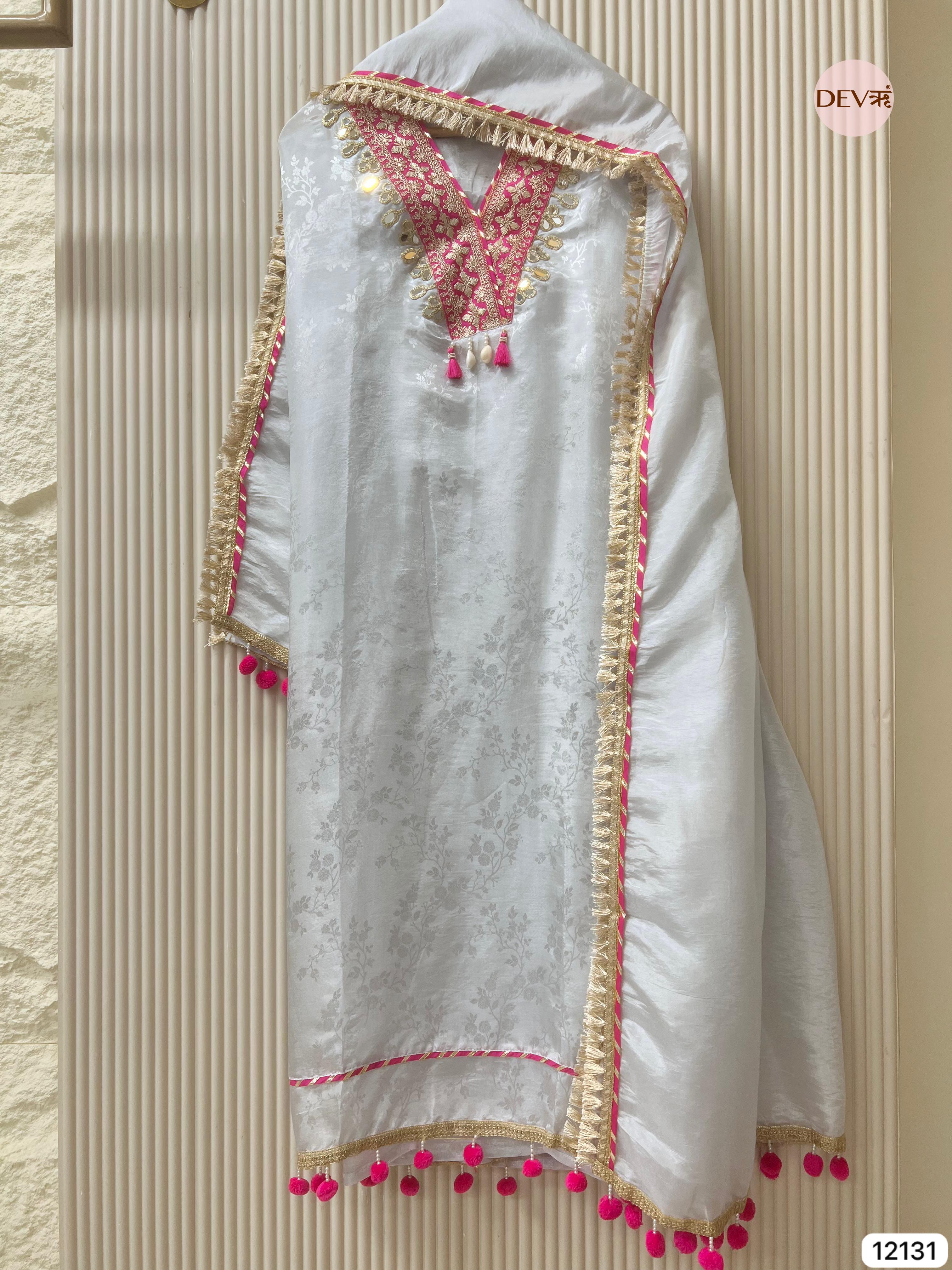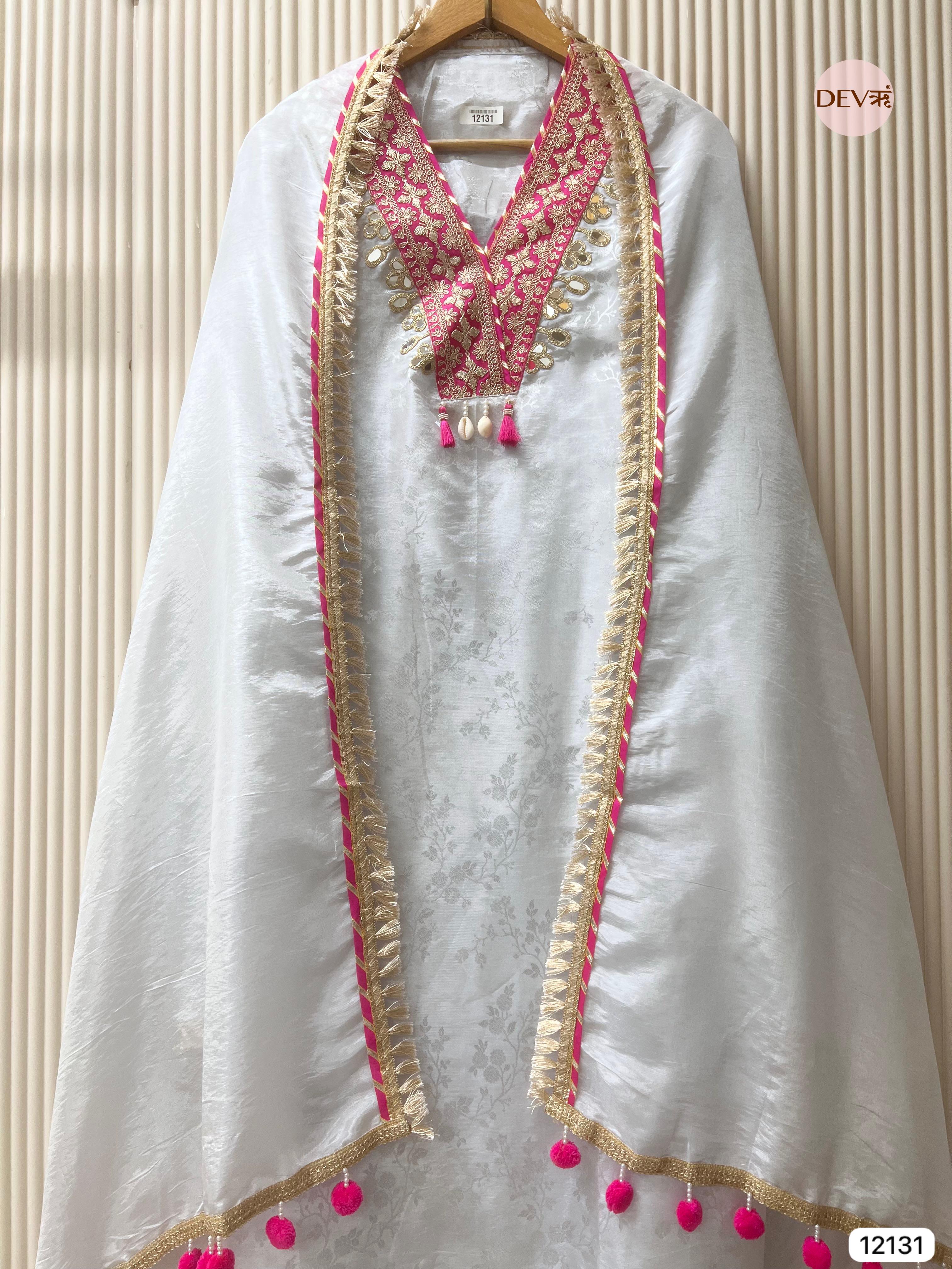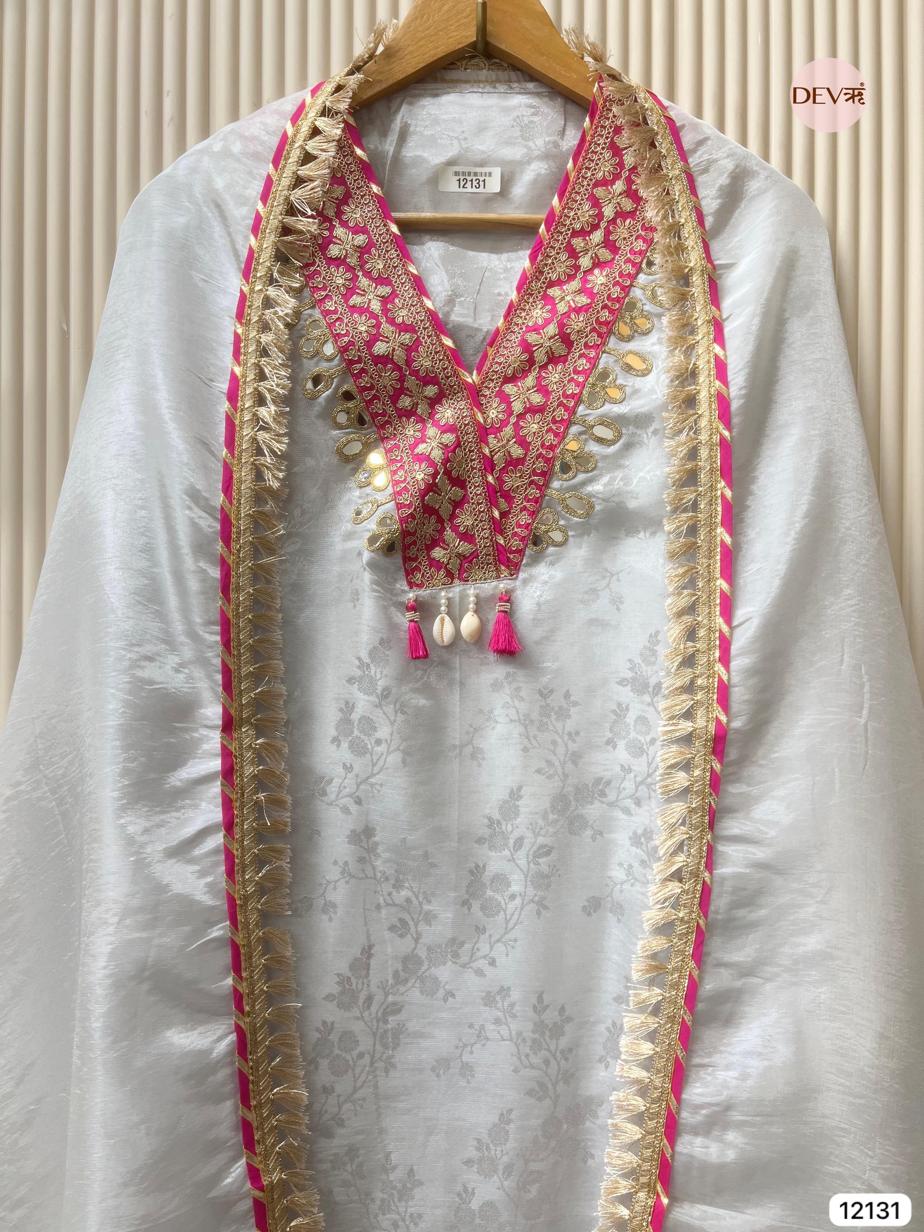 Shirt - Tissue silk unstitched woven with gota and mirror embellishments