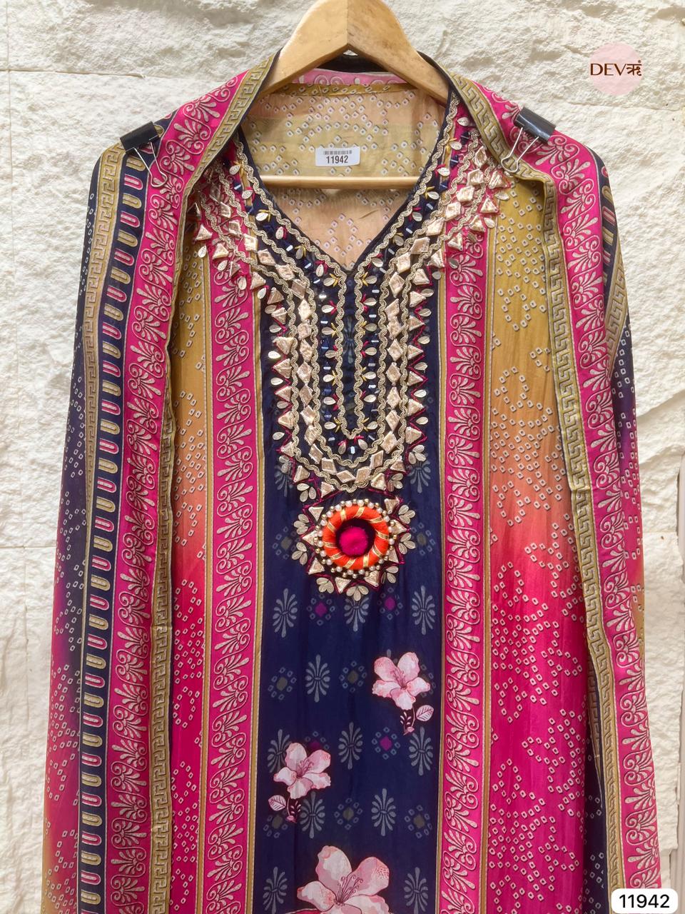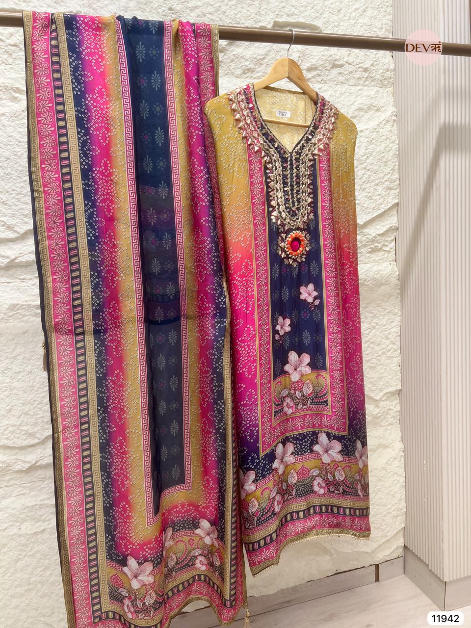 Shirt - Tissue shimmer silk unstitched printed hand embroidered