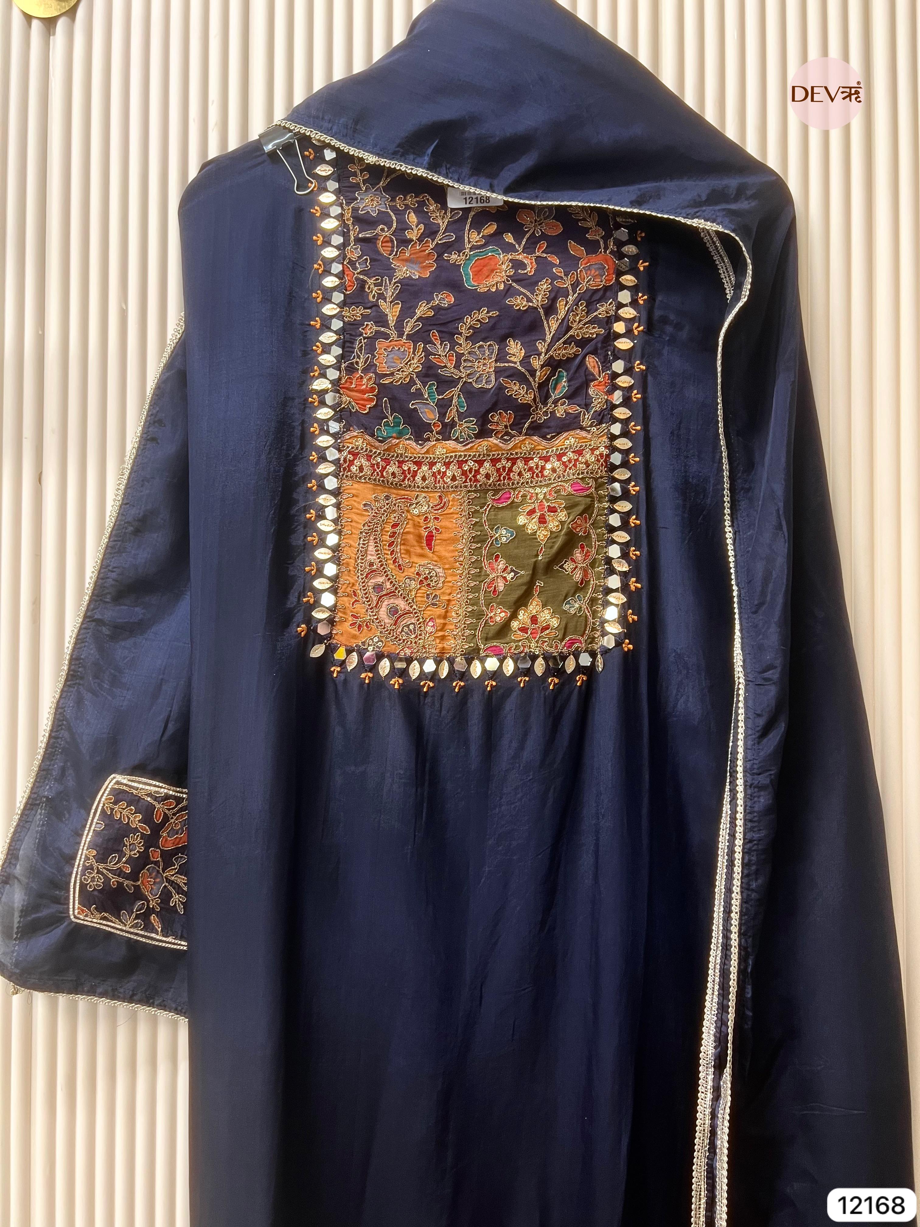 Shirt - Organza silk unstitched shirt with hand embroidered