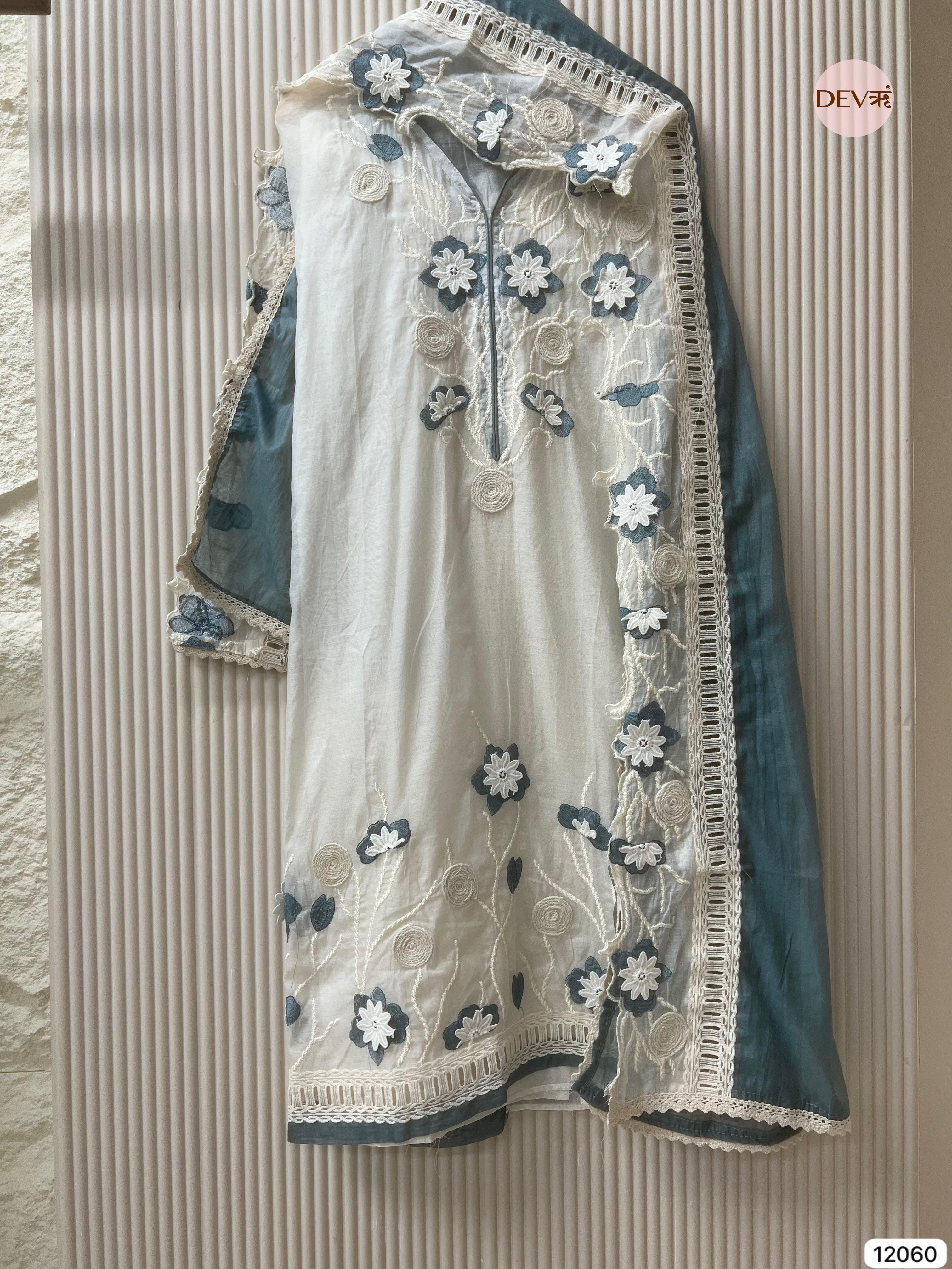 Shirt - Mul Chanderi unstitched with hand embroidered with lace accents