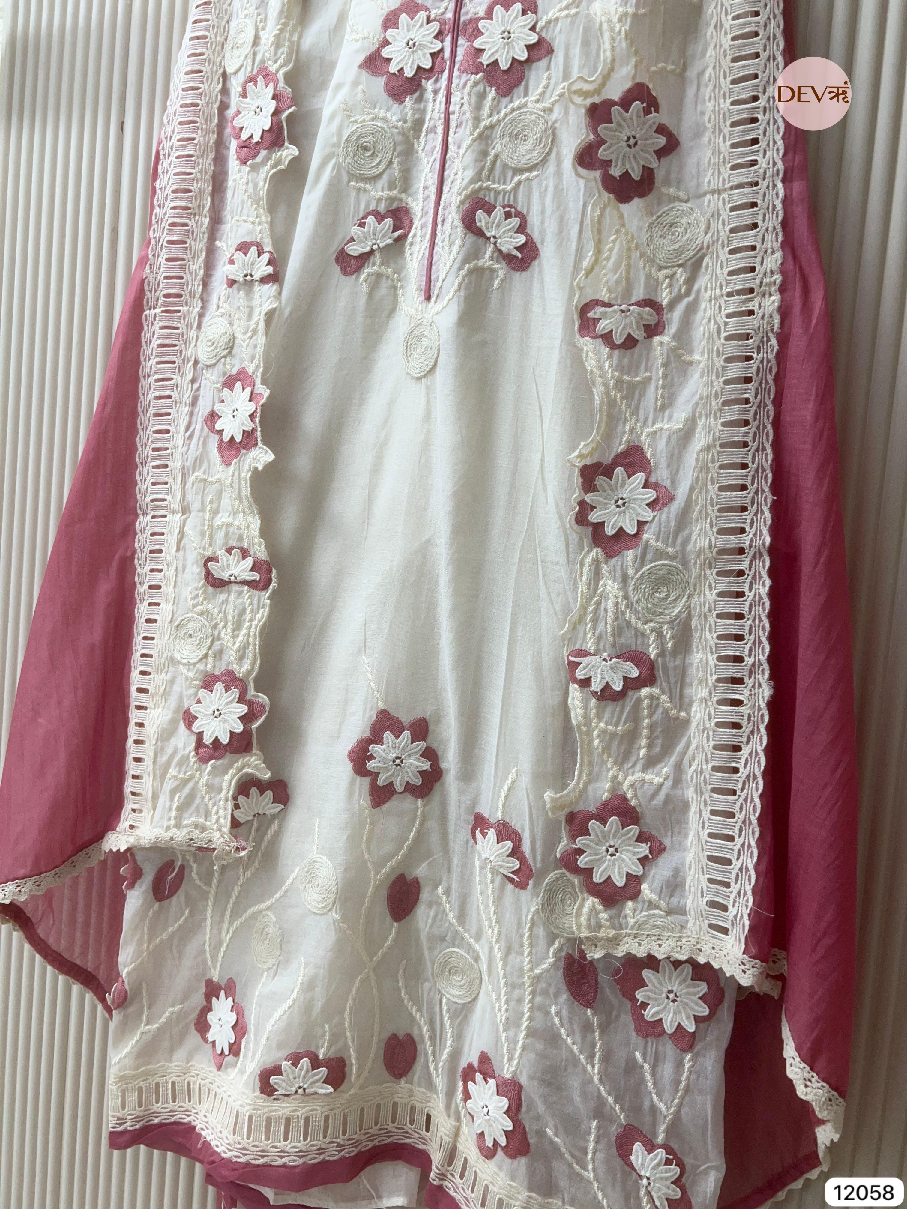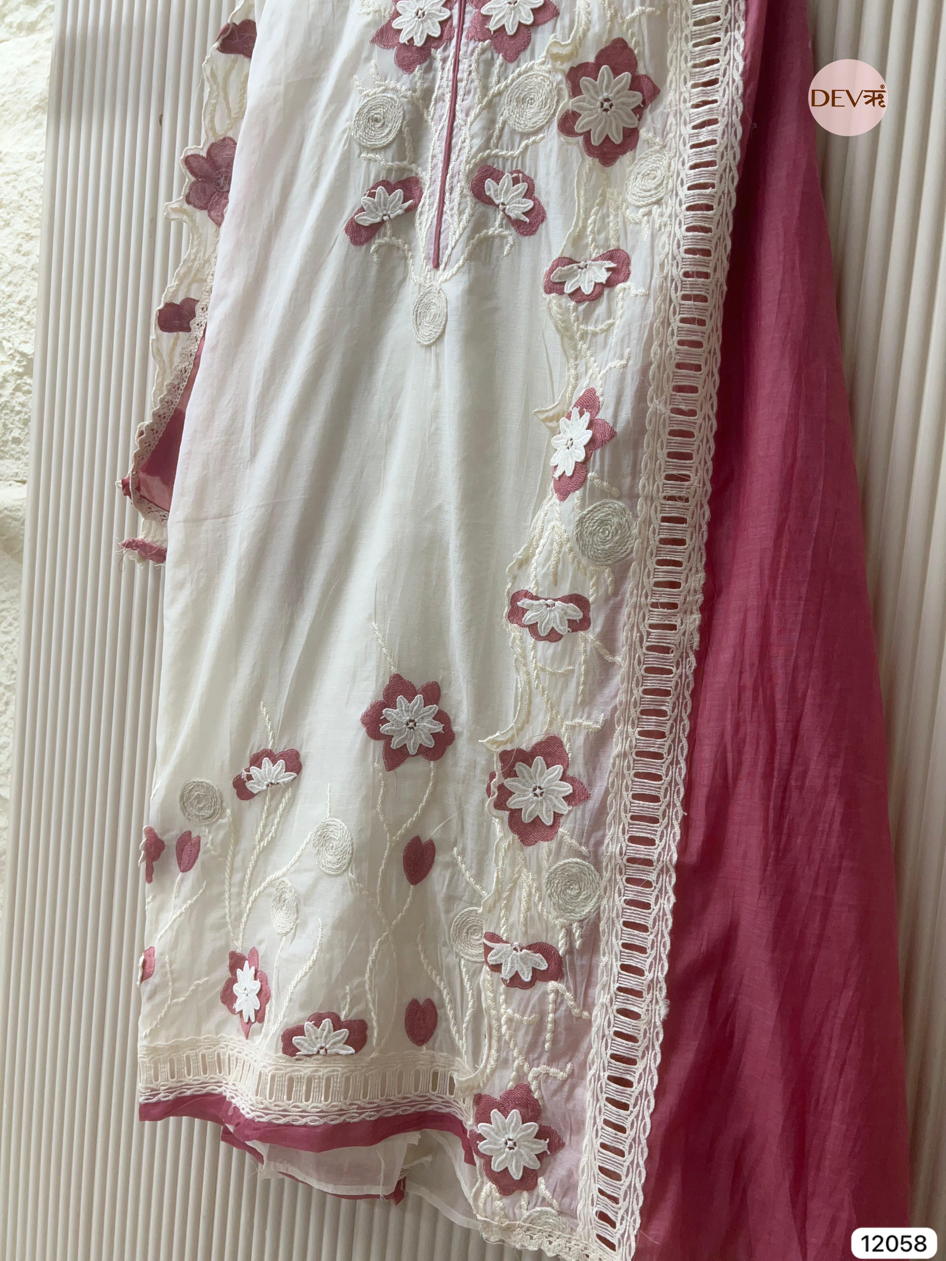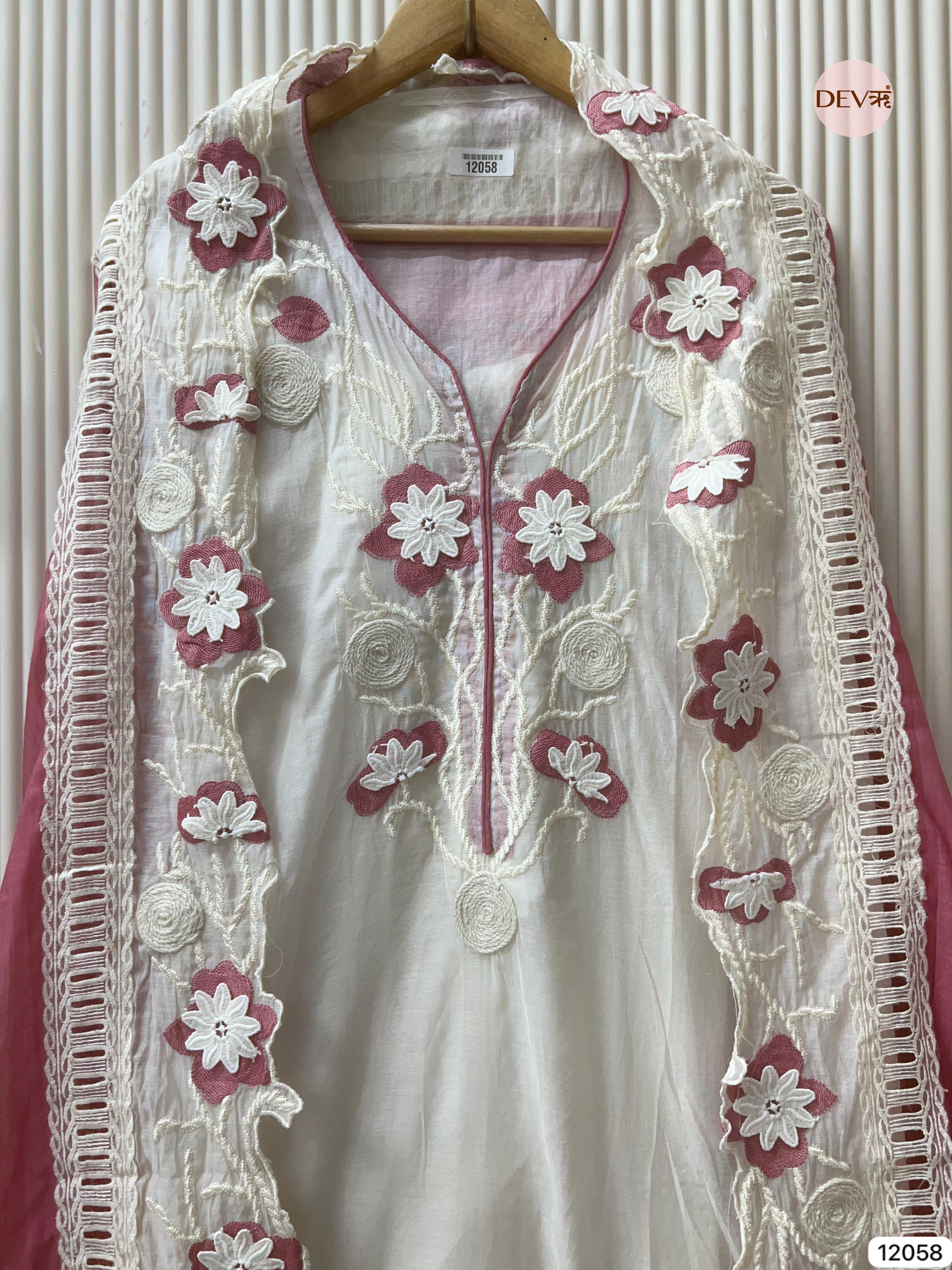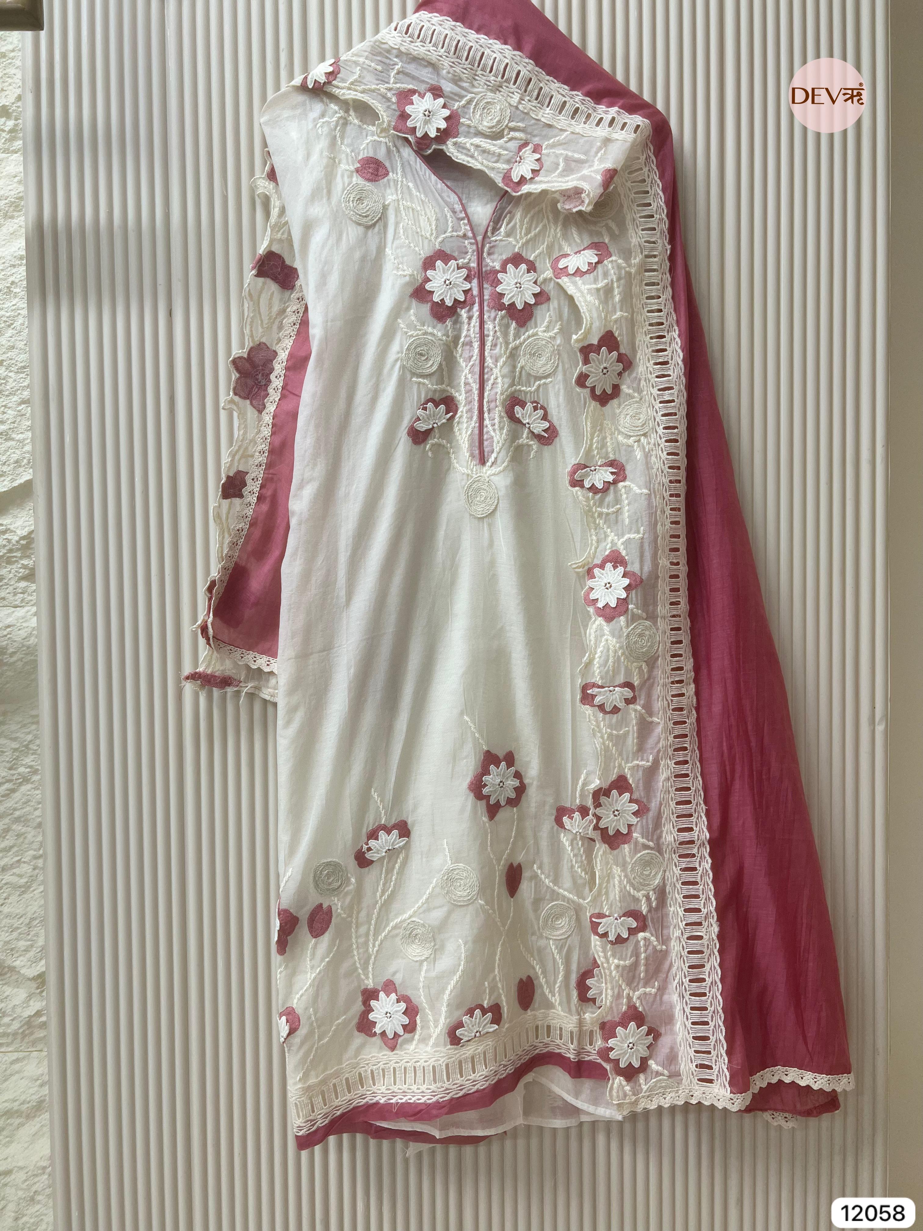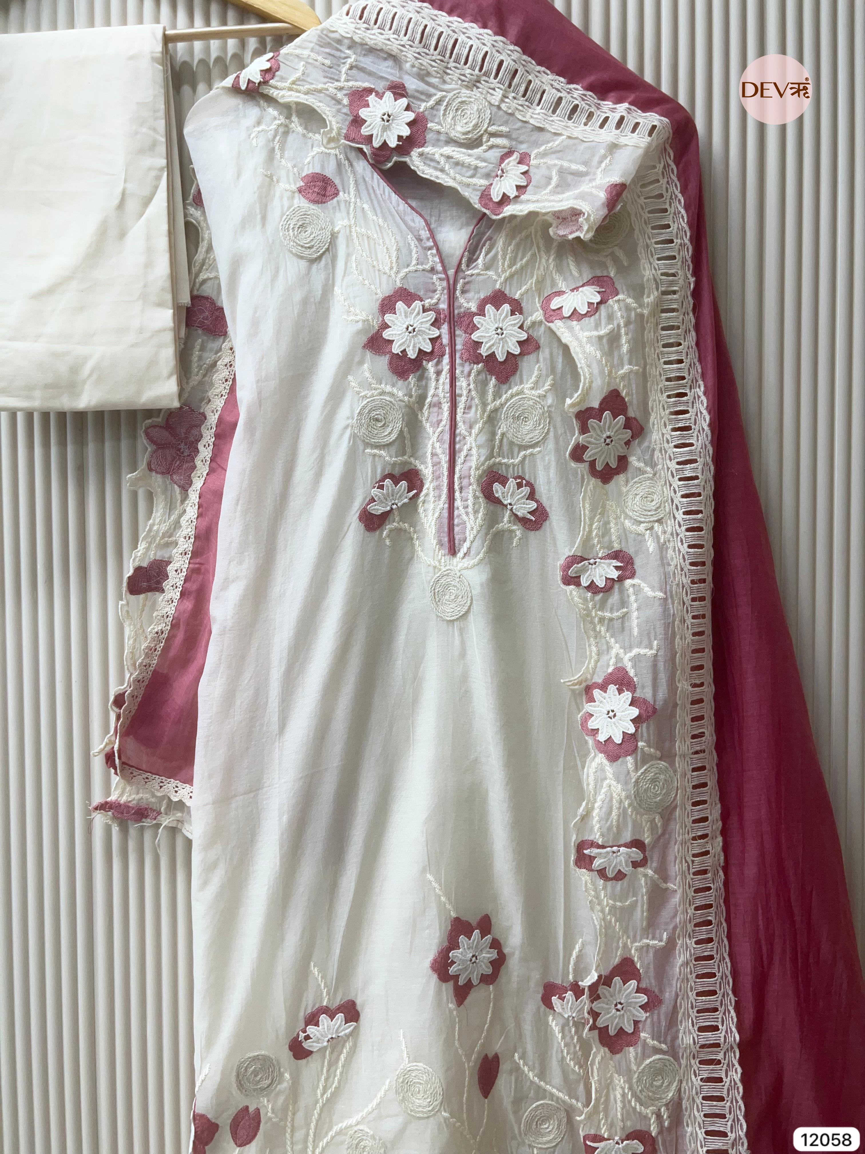 Shirt - Mul Chanderi unstitched with hand embroidered with lace accents