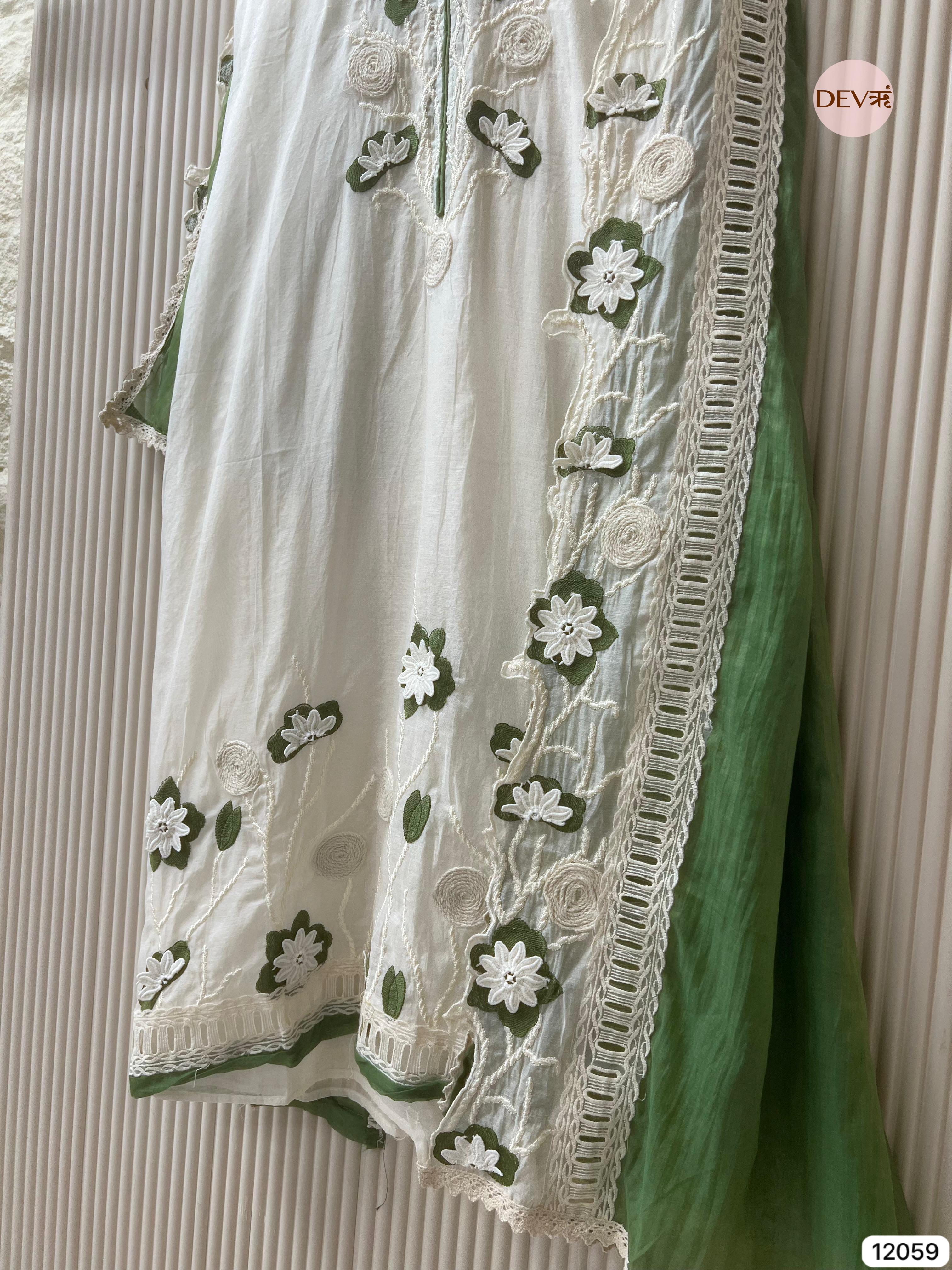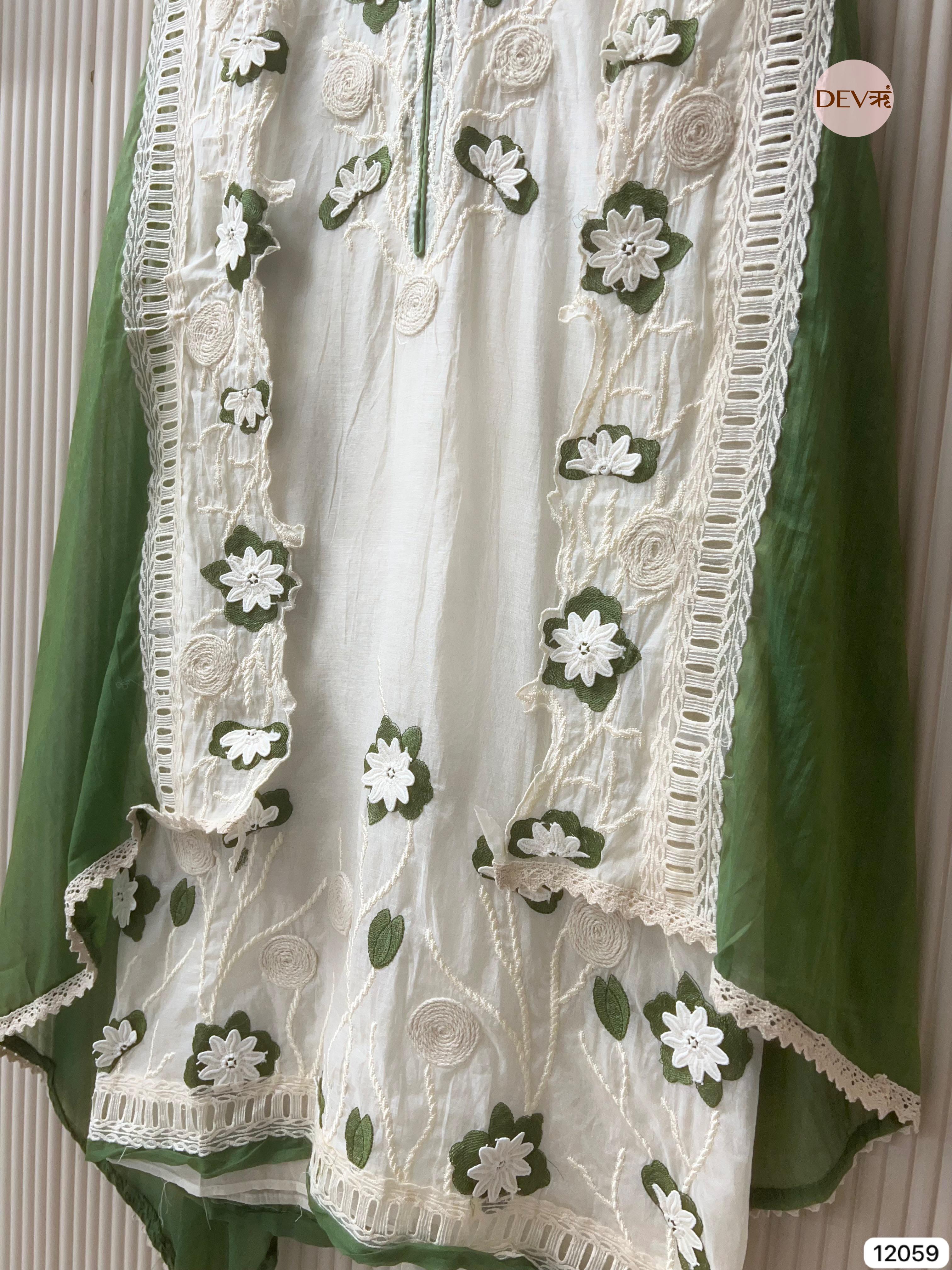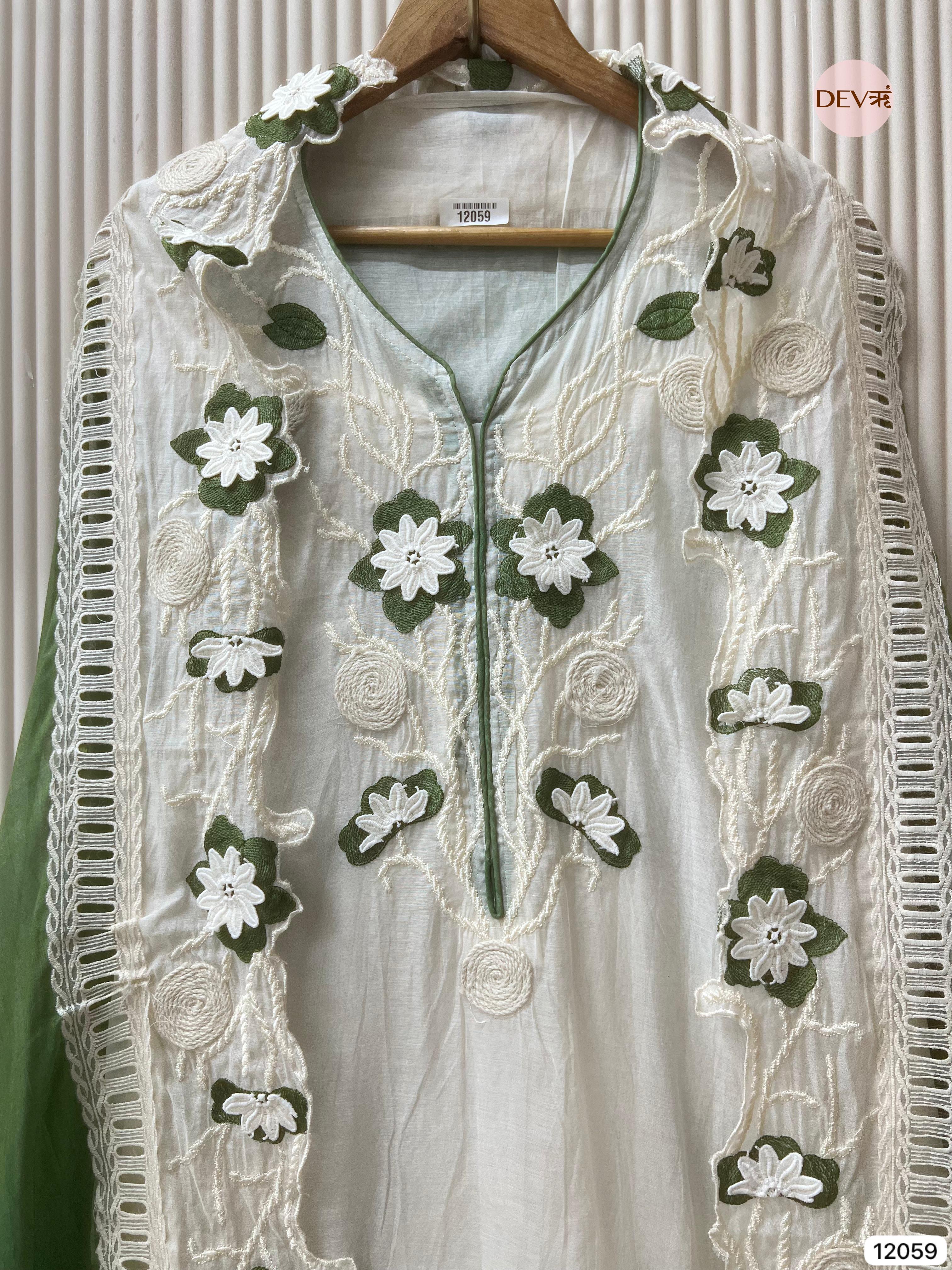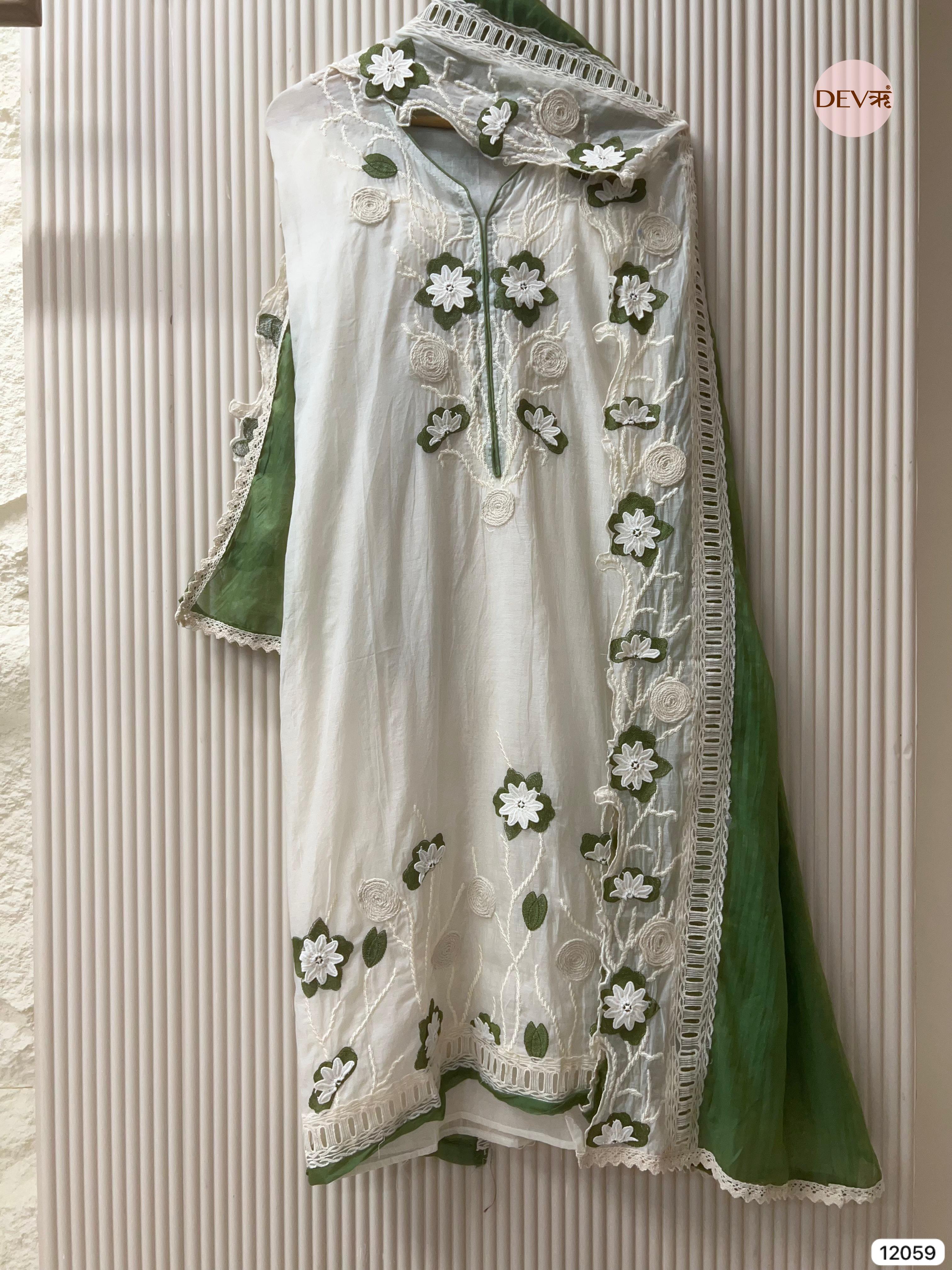 White Mul Chanderi Unstitched With Hand Embroidered -Set Of 3