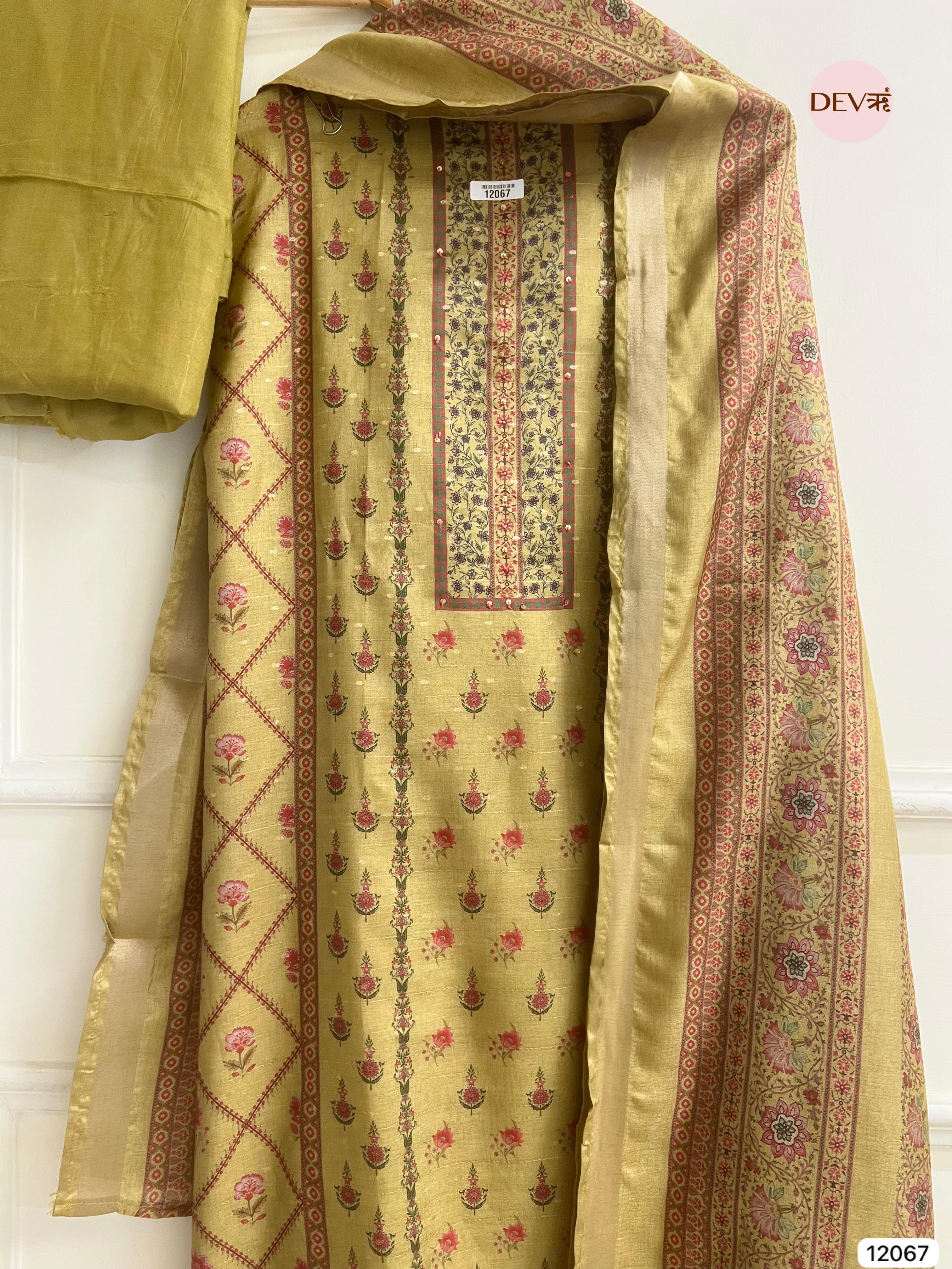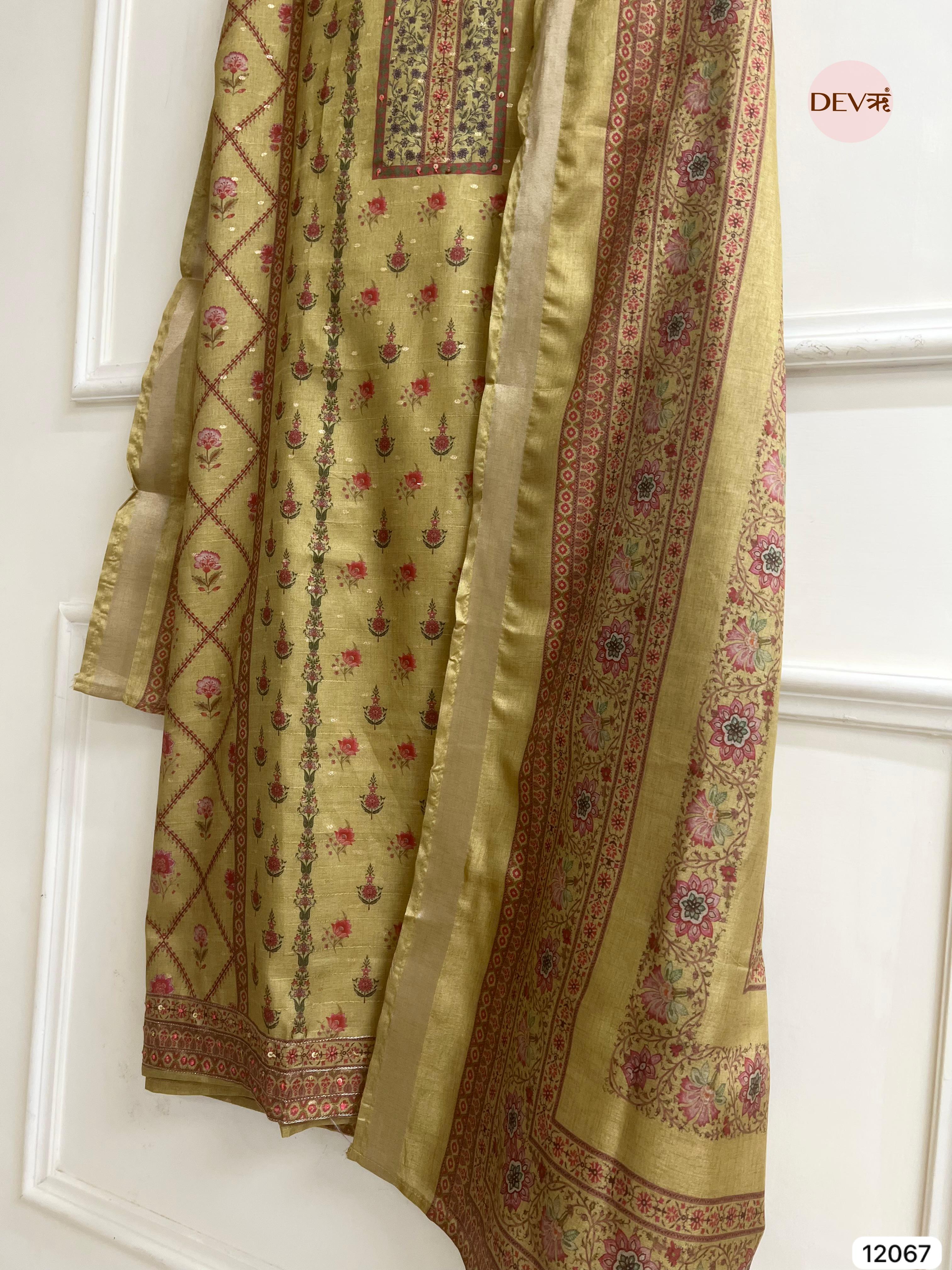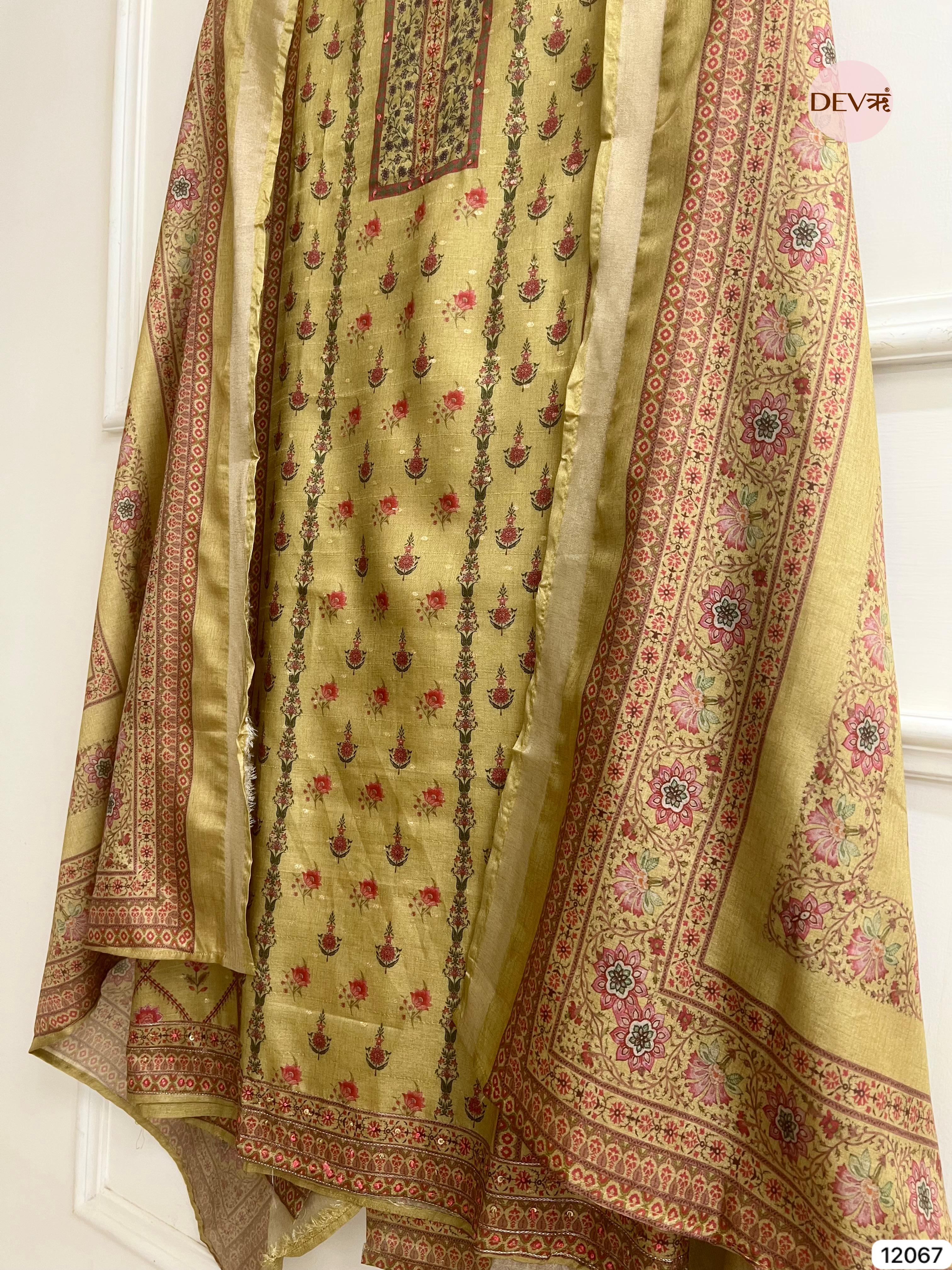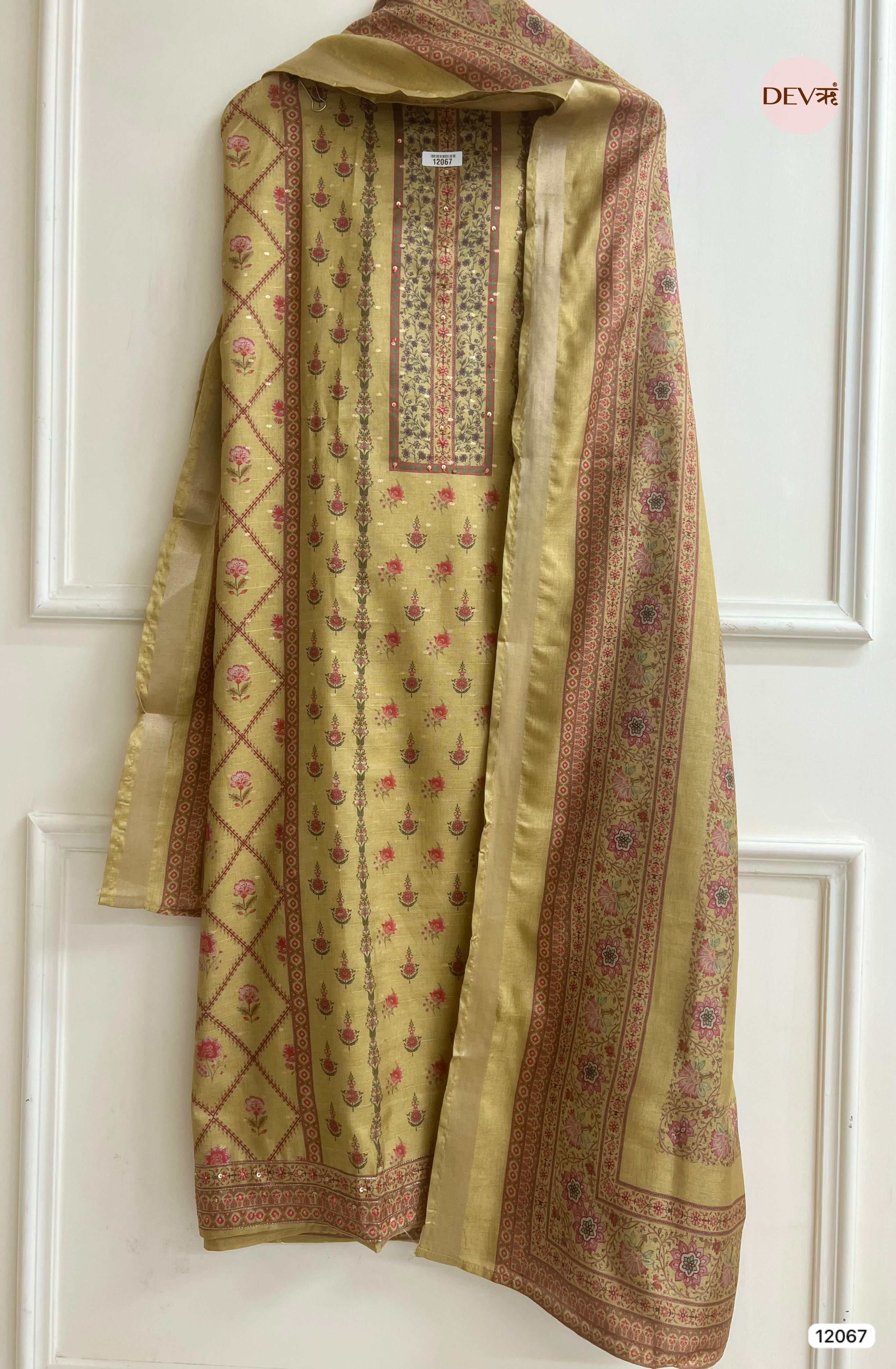 Shirt - Raw handloom silk unstitched designer printed with hand embroidery highlights